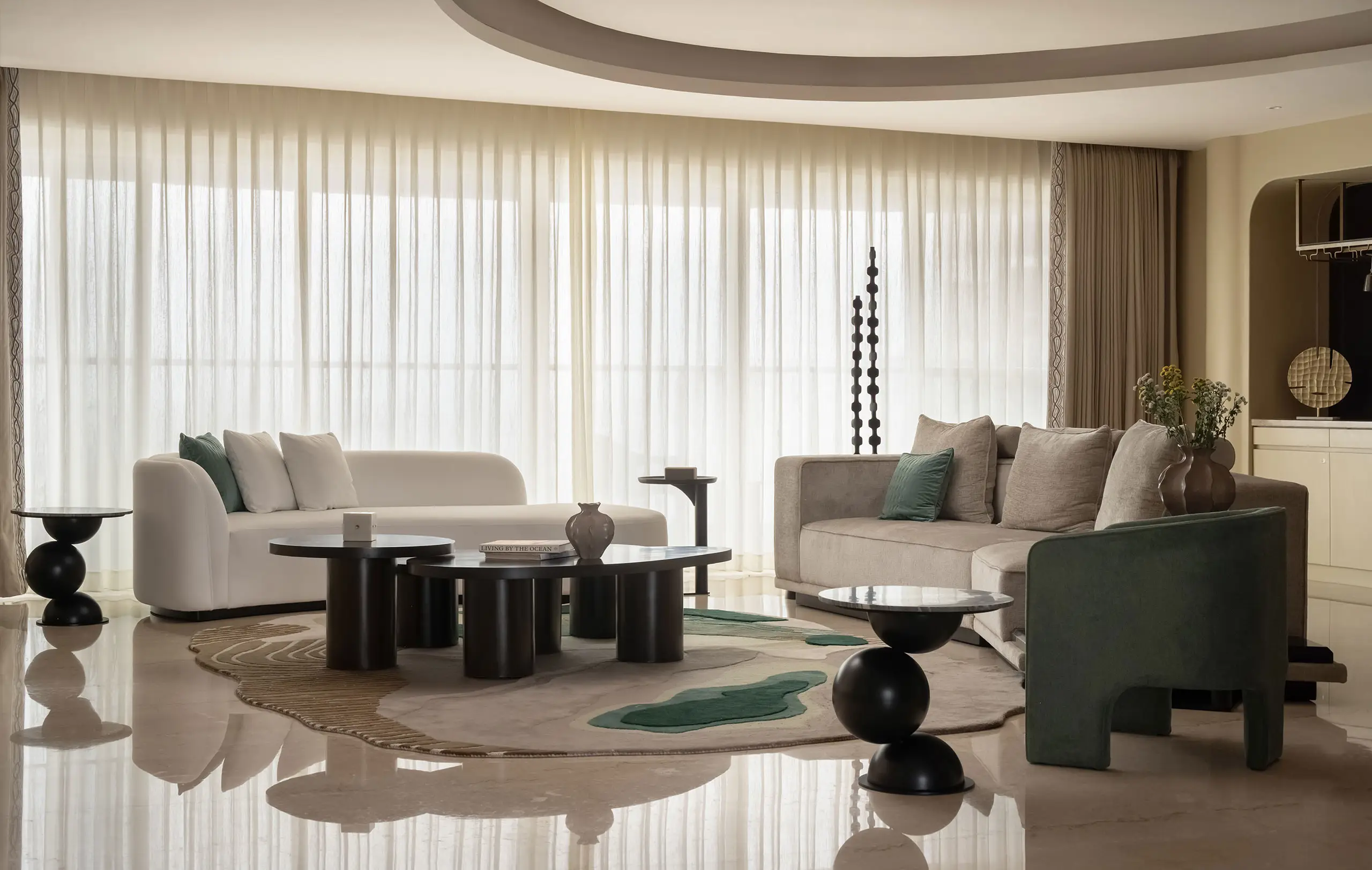 An interior defined by quiet luxury, where muted palettes, soft textures, and gentle ambient lighting shape a calm yet expressive living environment.